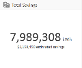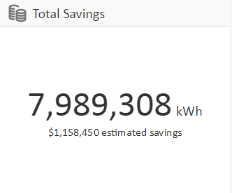 El componente Ahorro total le permite ver cuánto le ha ahorrado su sistema de iluminación desde la instalación. Haga clic en el número para ver el gráfico lineal Ahorro LightRules. Para obtener más información acerca del ahorro total, véase Informes en tablas. |